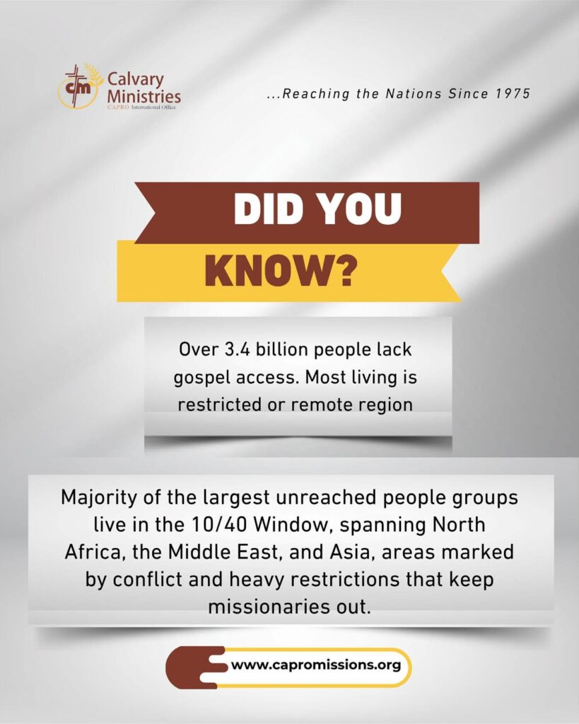 There are 69 nations inside the 10/40 Window, that is the area of the world between the 10th and 40th parallels, and includes mostly Islamic, Buddhist, Hindu and animistic countries. Therefore, this is the area of the world with the… Read moreOver 3 Billion Haven’t Heard!